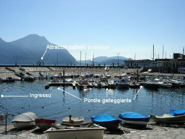 Ad Intra c'è il porto comunale posizionato sul lungolago dell'animato capoluogo, a pochi passi dal centro ed alle spalle dell'importante attracco del battello pubblico. L'ingresso è ampio e di facile accesso, il fondale è profondo e per lo più fangoso, è facilmente riconoscibile per la sua struttura a forma di semicerchio. Parte dei posti barca sono su pontili galleggianti, sono presenti numerosi attracchi sugli scivoli per piccole unità, normalmente già occupati da imbarcazioni locali. Di notte, l'ingresso è ben segnalato dalle tipiche torrette rosso e verde.