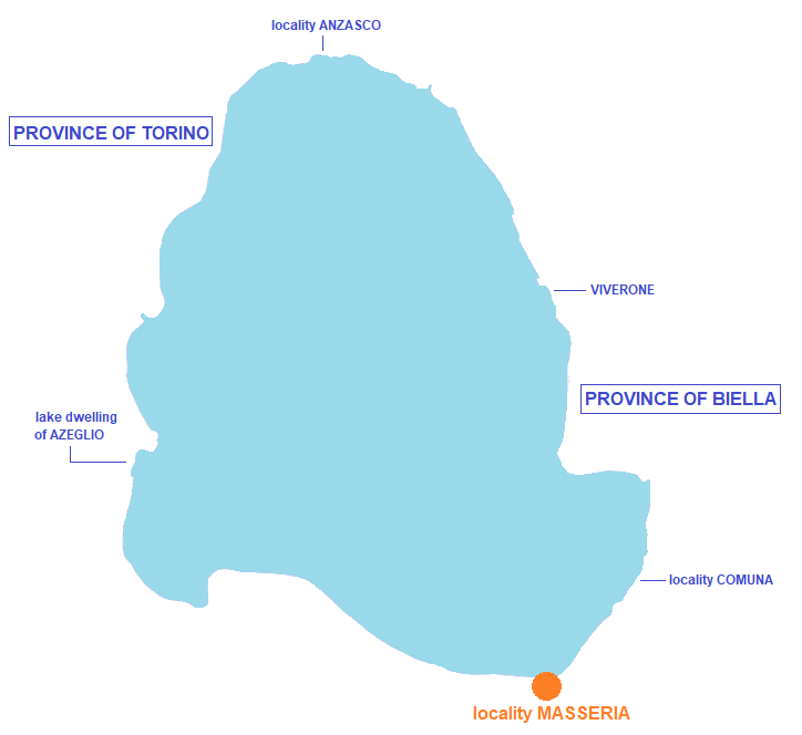 Masseria, administratively municipality of Viverone, is immediately situated after locality Comuna, in the south part of lake of Viverone; the place is well organized, there are numerous restaurants and camping. The lake-front is attractive and characteristic, where there is the public port.