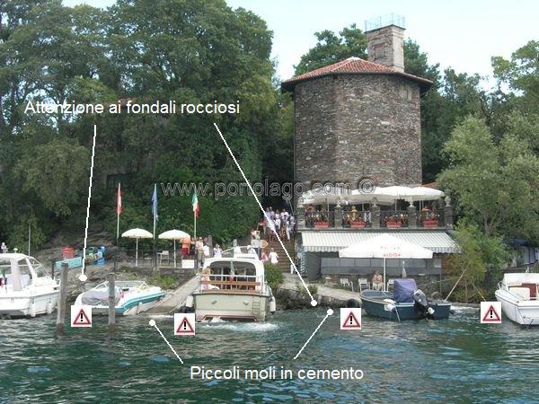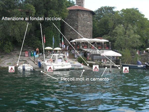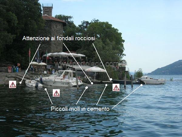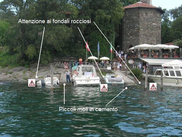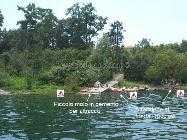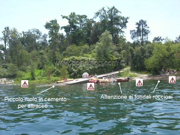A nord dell'isola, ai fini dell'ormeggio e/o per eventuale sosta, è presente un molo in cemento con funzione di attracco (1) e (2): prestare particolare attenzione al livello del lago ed ai fondali pietrosi.