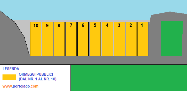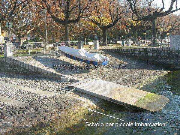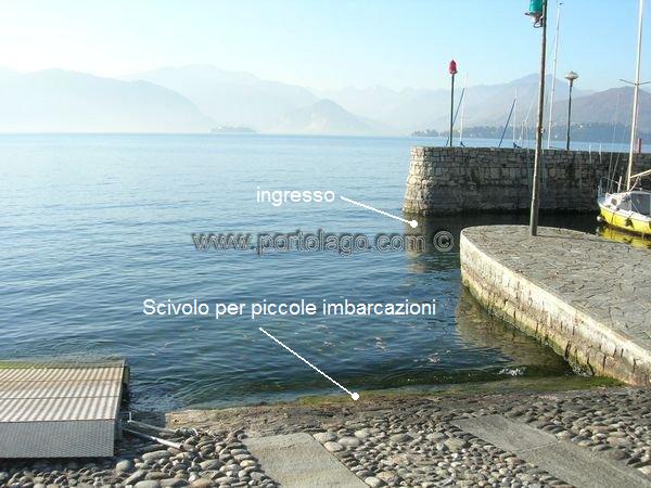 Adiacente all'ingresso del porto pubblico e nelle vicinanze dello spiaggione in sabbia (1), è posizionato uno scivolo di approdo destinato a nr. 10 imbarcazioni delle dimensioni massime di 6 metri. I posti sono assegnati, tramite bando, da parte dell' Autorità di Bacino Lacuale dei laghi Maggiore, Comabbio, Monate e Varese.