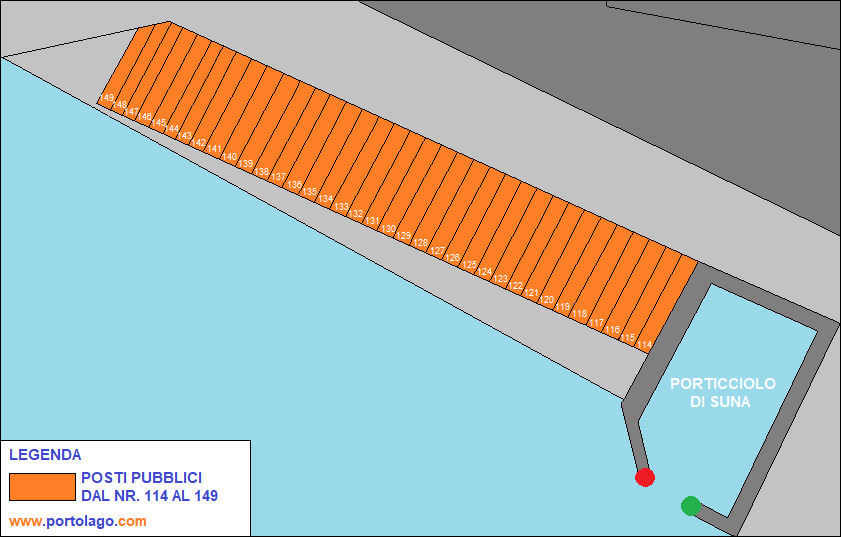 Tra la chiesa parrocchiale di S. Lucia in località Suna e il monumento ad Antonio Rossi, si trova uno scivolo di approdo per piccole imbarcazioni dal nr. 151 al nr. 177. I posti sono assegnati, tramite bando, da parte della Gestione Associata "Bacino Maggiore Provincia Verbano Cusio Ossola".