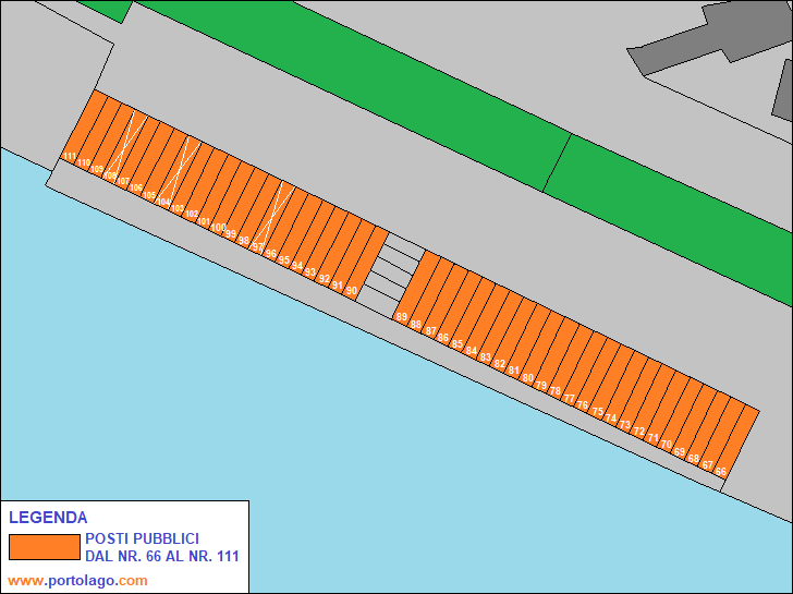 Tra il porto comunale e la spiaggia pubblica, si trova uno scivolo di approdo per piccole imbarcazioni dal nr. 66 al nr. 111. I posti sono assegnati, tramite bando, da parte della Gestione Associata "Bacino Maggiore Provincia Verbano Cusio Ossola".